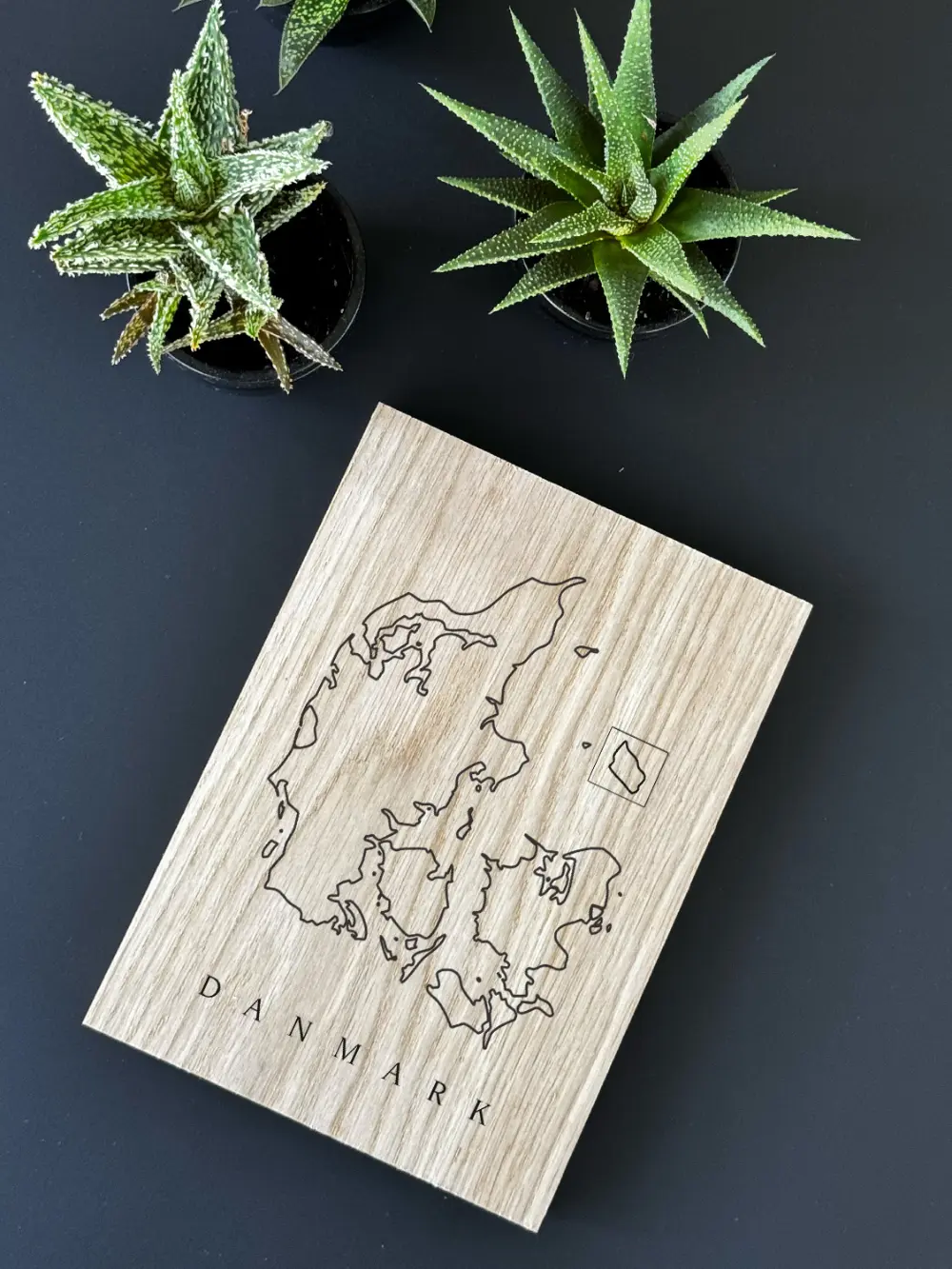 Elegant Danmark træ plakat og i høj kvalitets egetræ med et detaljeret kort over Danmark. Perfekt som vægophæng og vise din kærlighed til landet.